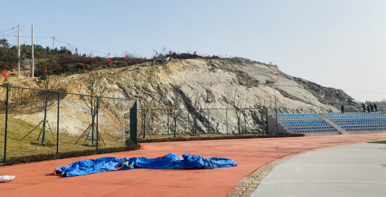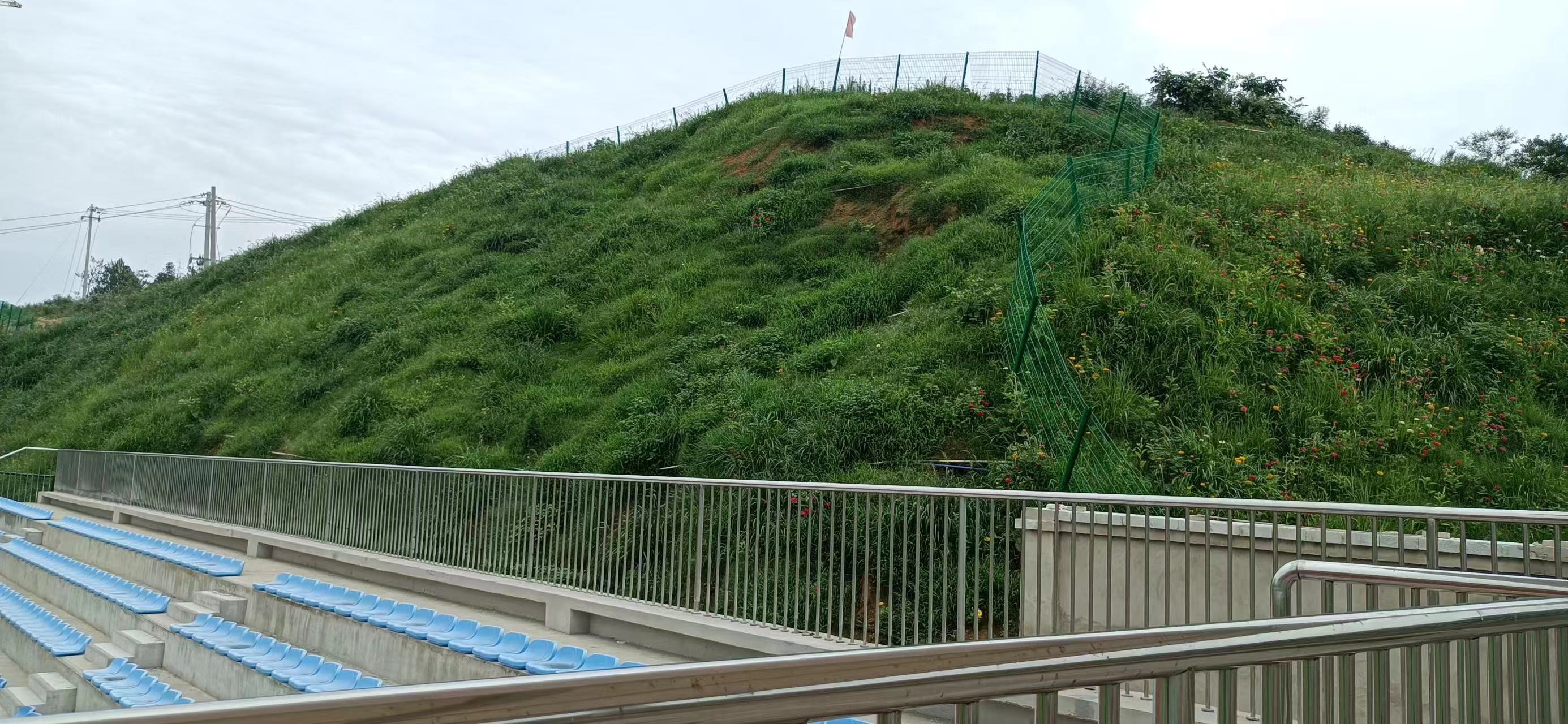 武漢商貿職業學院紅安校區足球場邊坡綠化工程項目-植被混凝土混合基材噴播↓